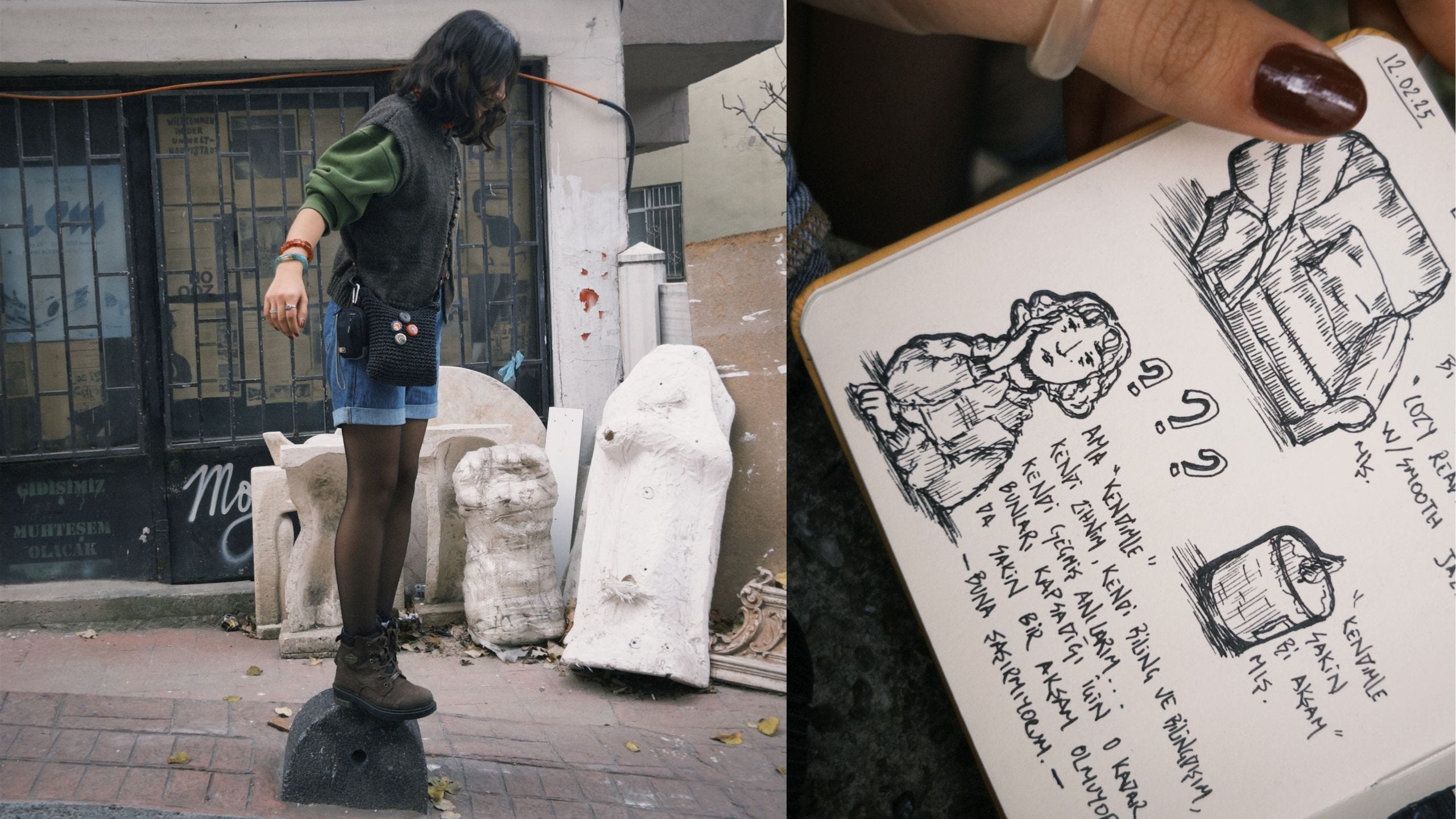 Kendi ritmini bulan çizgilerin ve defter sayfalarının arasında dünyasını kuran bir sanatçıyı konuk ediyoruz: Melike Taşer. Çizime bir kayıt ve hatırlama aracı gibi yaklaşan Melike; uzun zamandır tuttuğu defterlerde anları, duyguları ve iç sesini arşivleyerek kendi visual hikâyesini inşa ediyor.